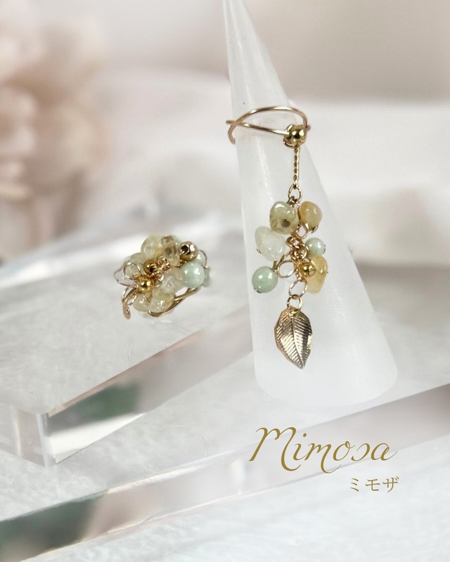 ミモザ イヤーカフ ミルキーカラー 揺れる 痛くない 取れにくい 誕生石 シトリン 花 華奢 アレルギー対応 軽い おしゃれ 母の日 プレゼント