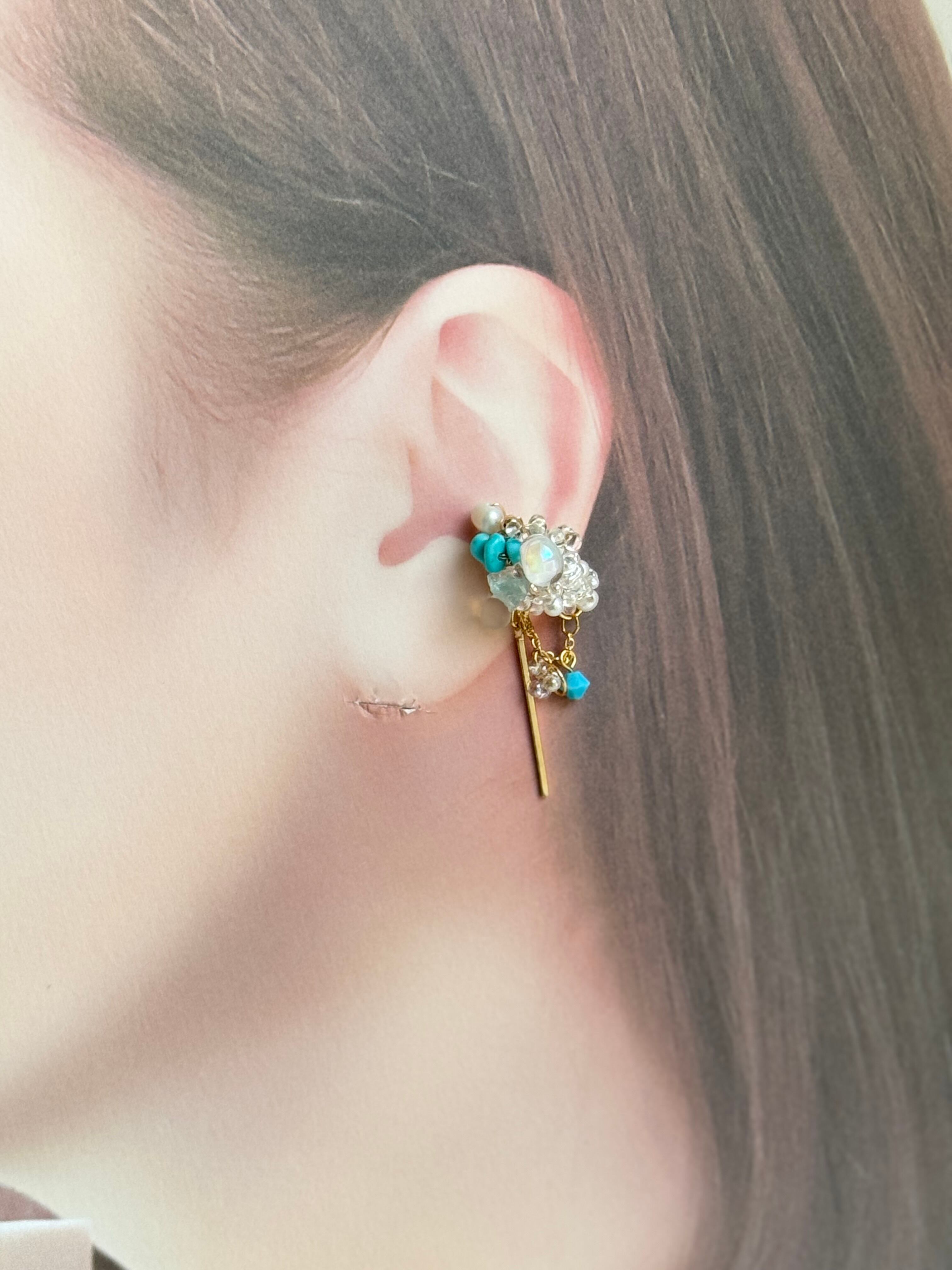 裏面(B面):小粒のビーズに淡水パールが散りばめられた、少しキラッとするビジューデザイン