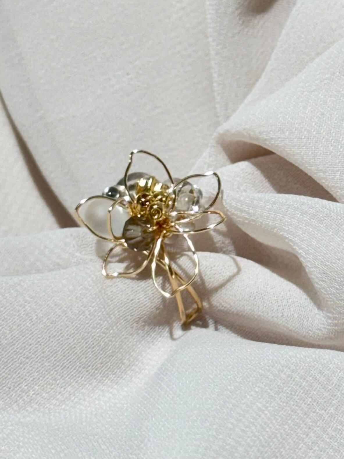 上質なクリスタルパール(スワロフスキー社製)を使用し、両面でデザインがガラっと変わる2wayリバーシブル。