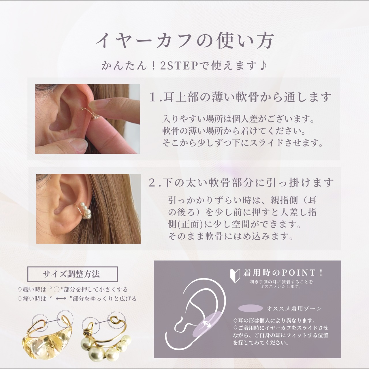 ※マスクの着脱の際など、イヤーカフが取れない様に
