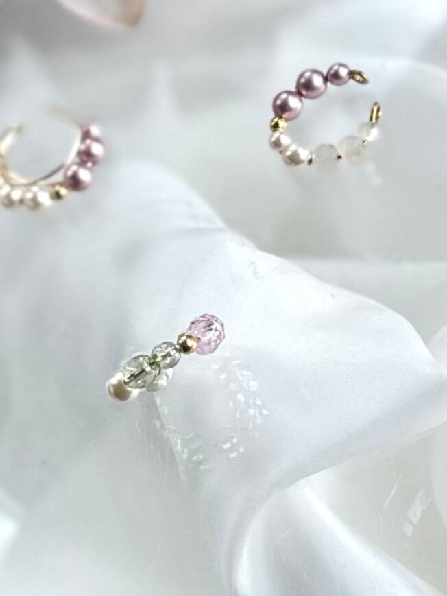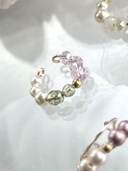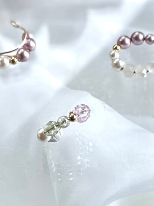 ガラスビーズと、クリスタルパールの可愛いと綺麗めが表裏にデザインされた大人可愛いデザイン♪