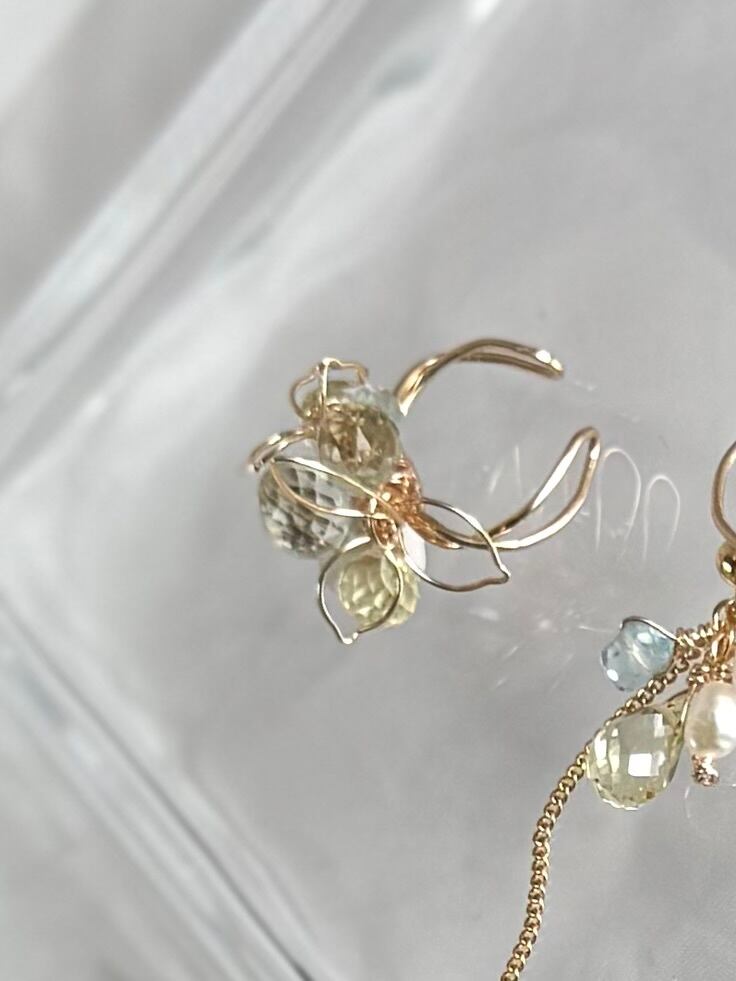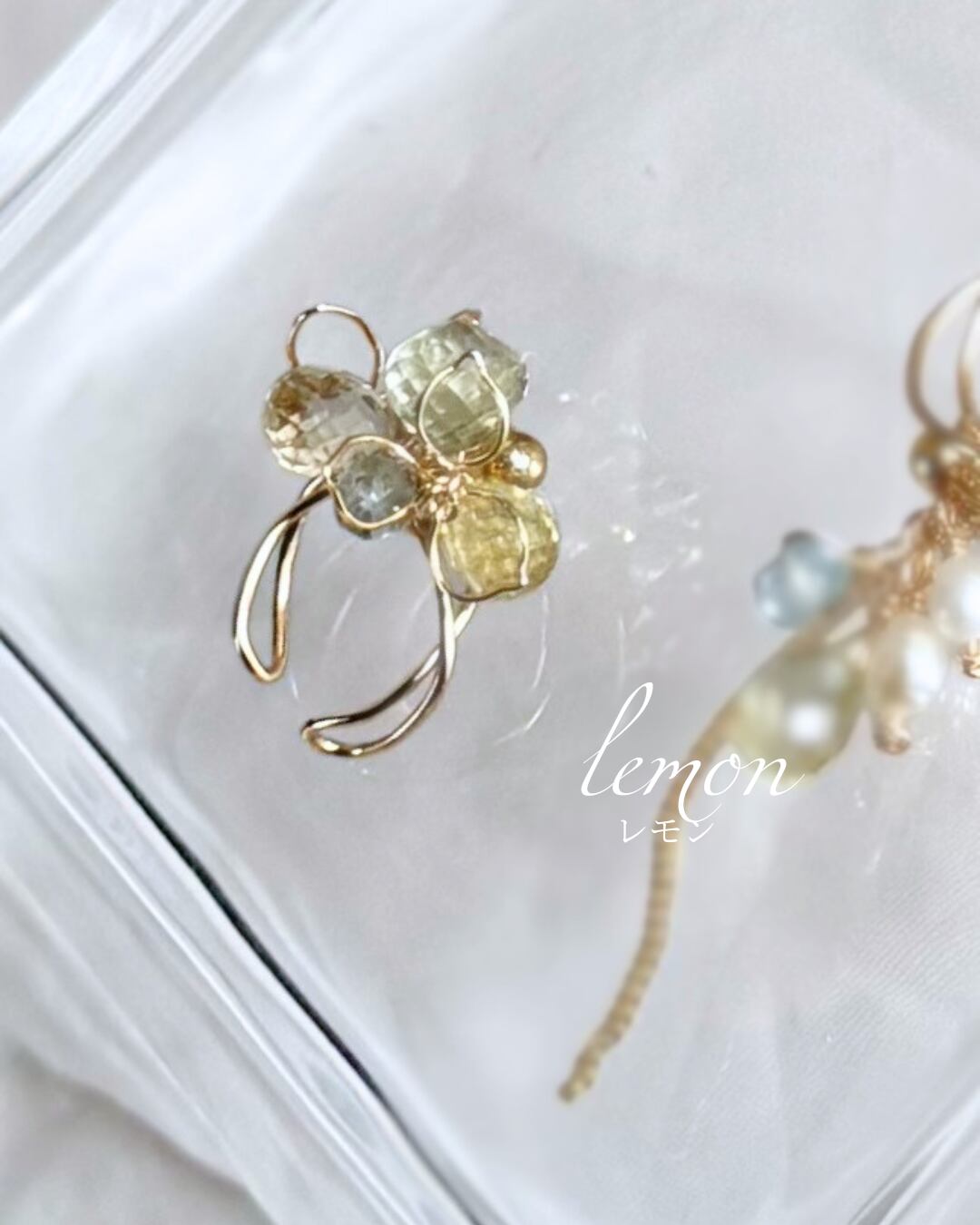 イヤーカフ lemon 痛くない 取れにくい アレルギー レモンクォーツ グリーンアメシスト アクアマリン おしゃれ 入学式 母の日