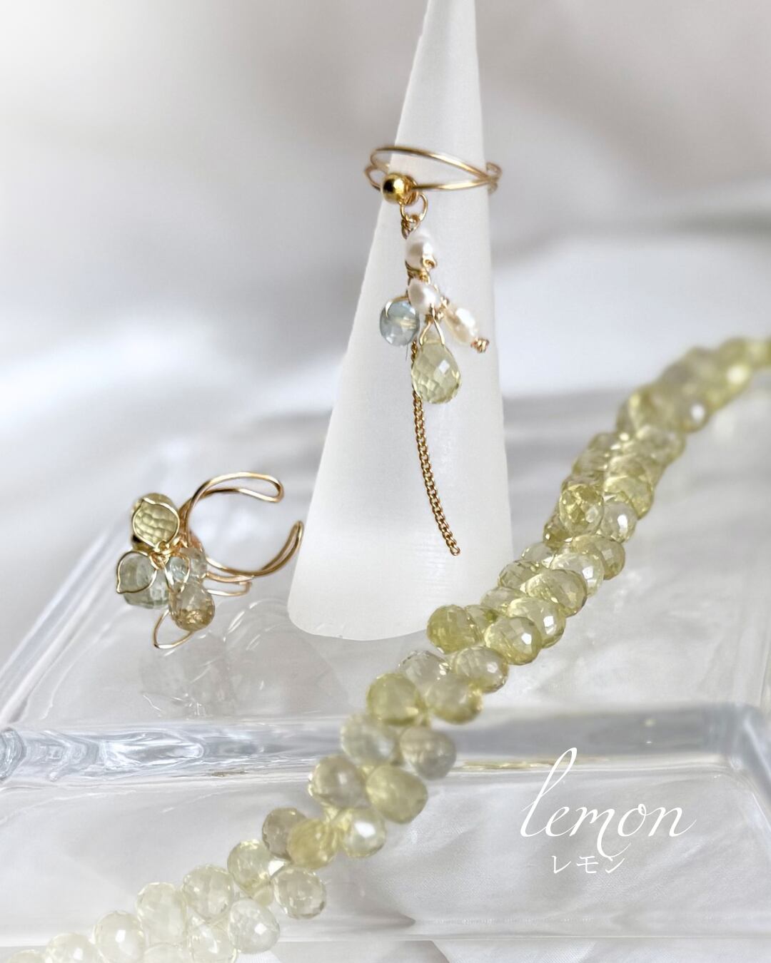 揺れるイヤーカフ lemon 痛くない 取れにくい アレルギー レモンクォーツ グリーンアメシスト アクアマリン おしゃれ 入学式 母の日