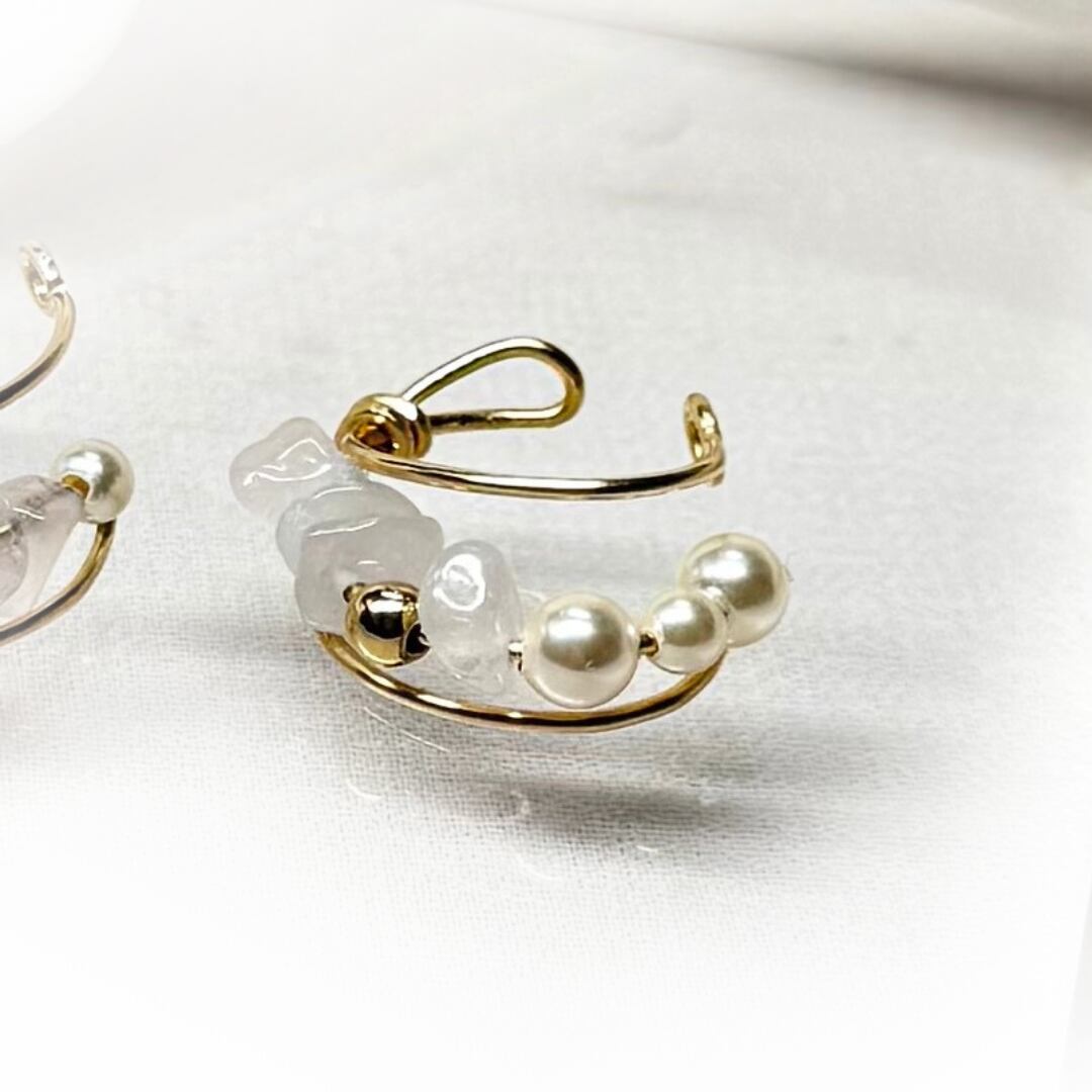「上品なクリスタルパールと天然石のイヤーカフ」